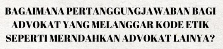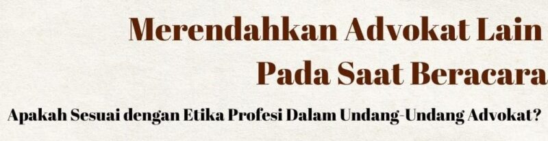 Pertanyaan tersebut di atas bila dibaca secara sepintas kesannya hanya merupakan sebuah kalimat tanya yang kurang bermakna karena kadang sudah menjadi hal yang biasa antar sesama Advokat akan saling menyerang dengan argumentasinya masing-masing dalam kerangka memperjuangkan kepentingan hukum dari kliennya dengan tanpa disadari bahwa bagi Advokat dalam menjalankan profesinya beracara harus tetap dalam batas-batas koridor etika berupa Kode Etik Profesi Advokat sebagaimana dalam ketentuan Undang-Undang Nomor. 18 Tahun 2003. Namun cukup menggelitik untuk direnungkan dan dipahami secara lebih dalam dalam sanubari kita sebagai insane profesi Advokat.